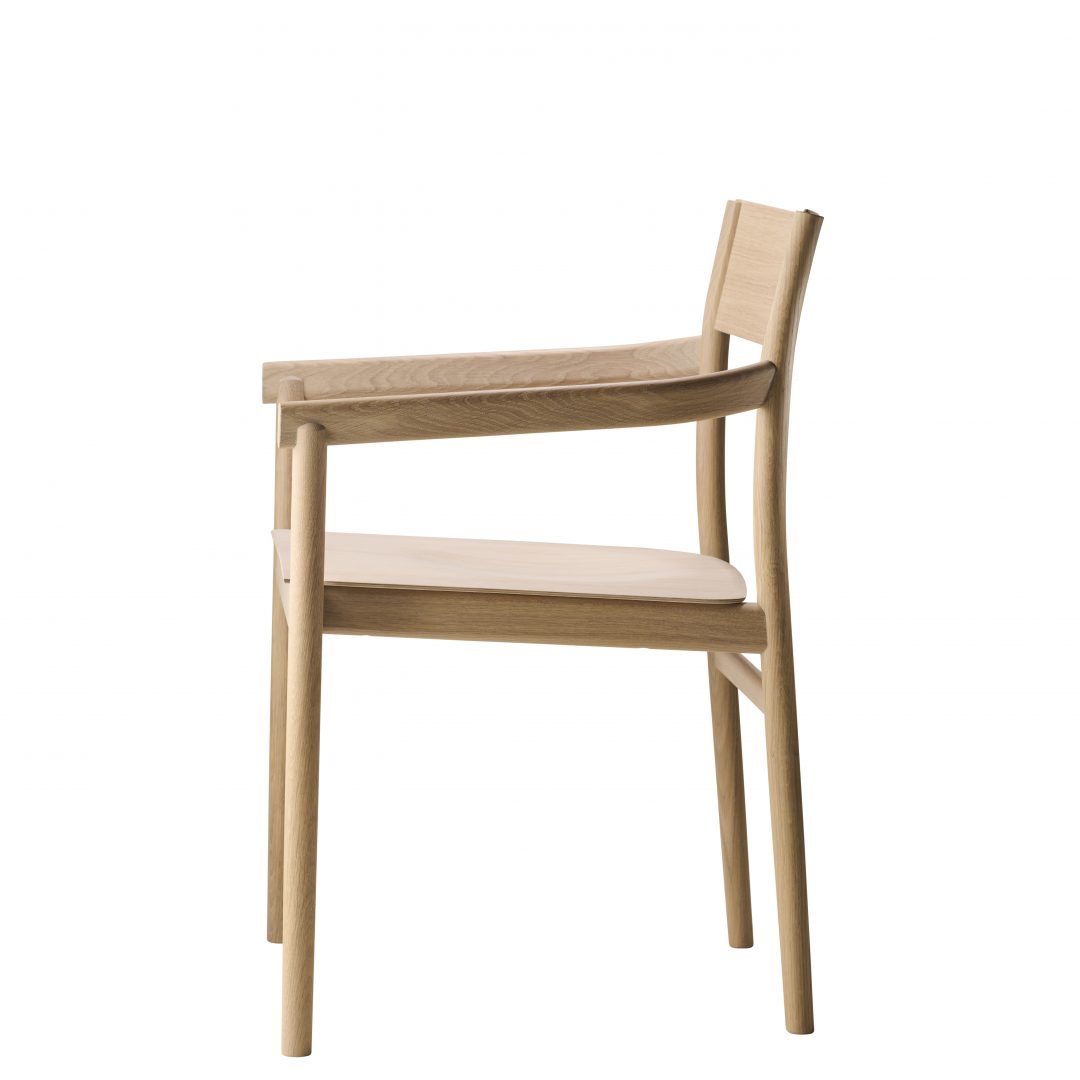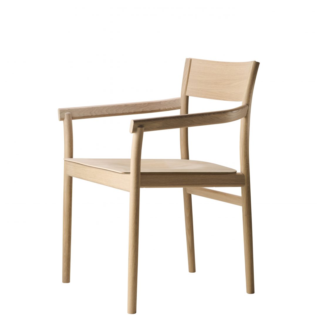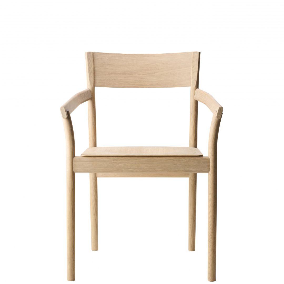 Karmstol i massiv ek med fram och bakben i massivböjt trä.